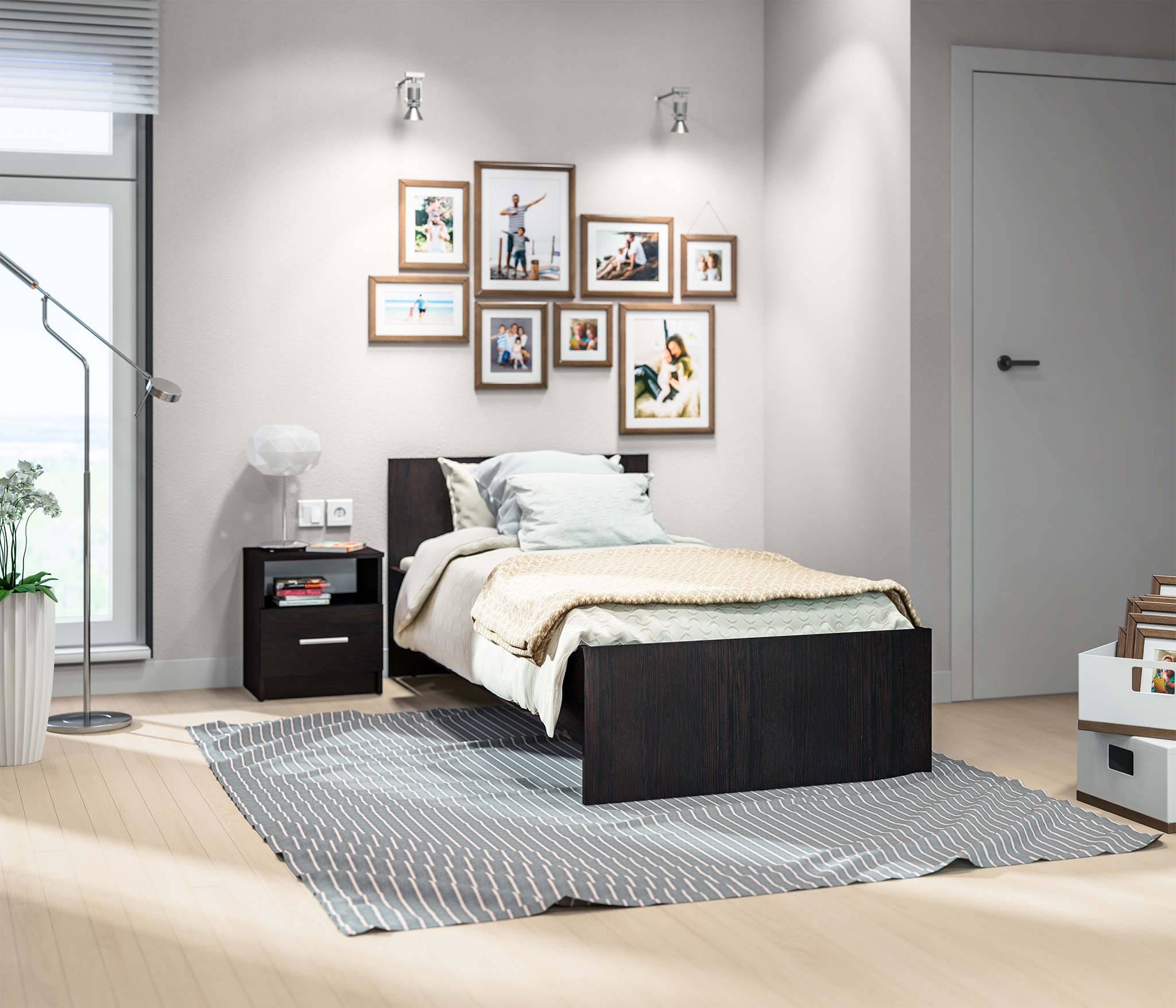 Размеры кровати (ШхВхГ) 90х110х208 см