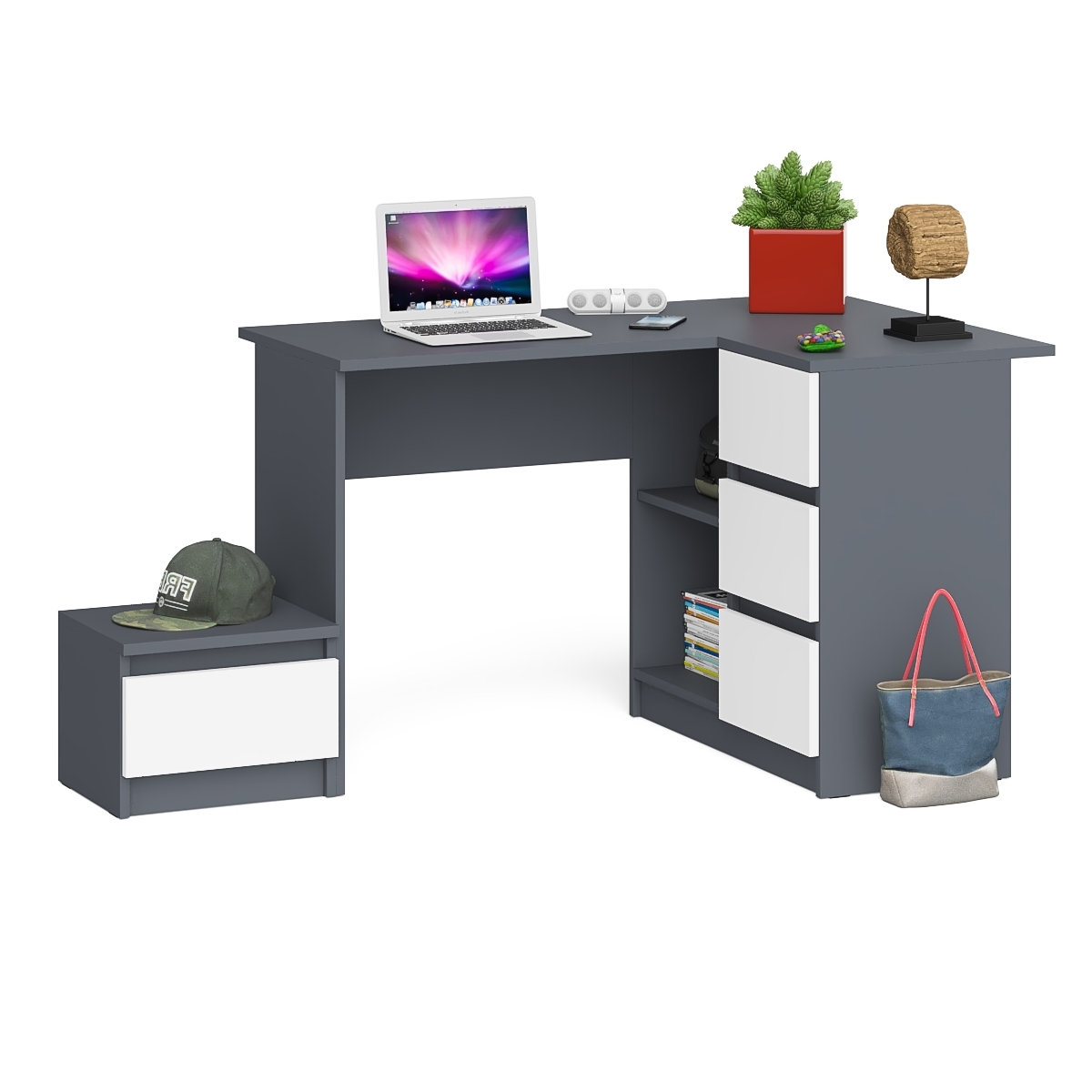 Отзывы о Столплит Угловой компьютерный стол Мори МС-16 правый с тумбой ТМП400 Графит/Белый