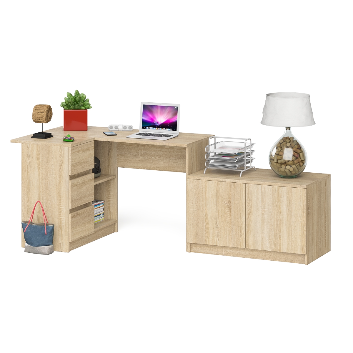 Отзывы о Столплит Компьютерный угловой стол левое исполнение с широкой тумбой Мори МА-900 Дуб Сонома