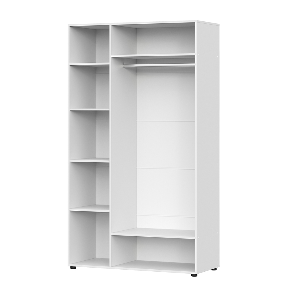 Наличие полок и штанги для одежды позволит разместить вещи, белье и аксессуары, а так же организовать место хранения сезонных вещей.