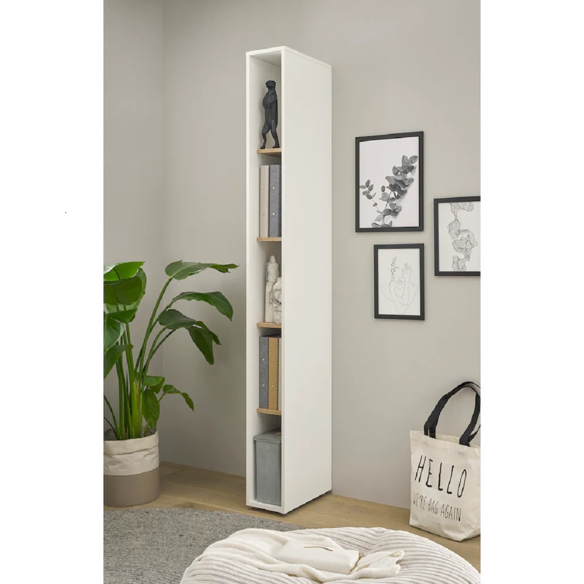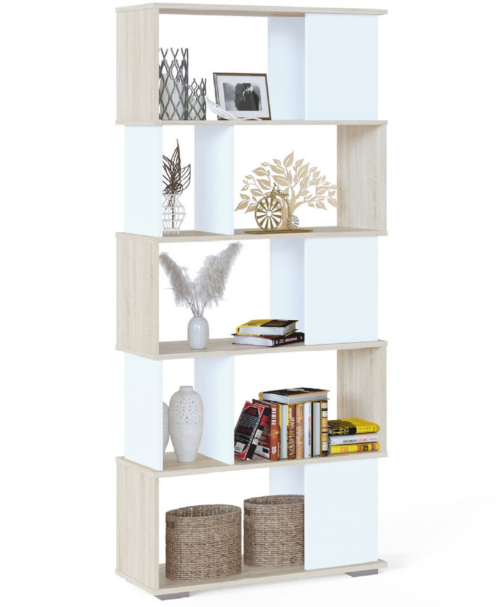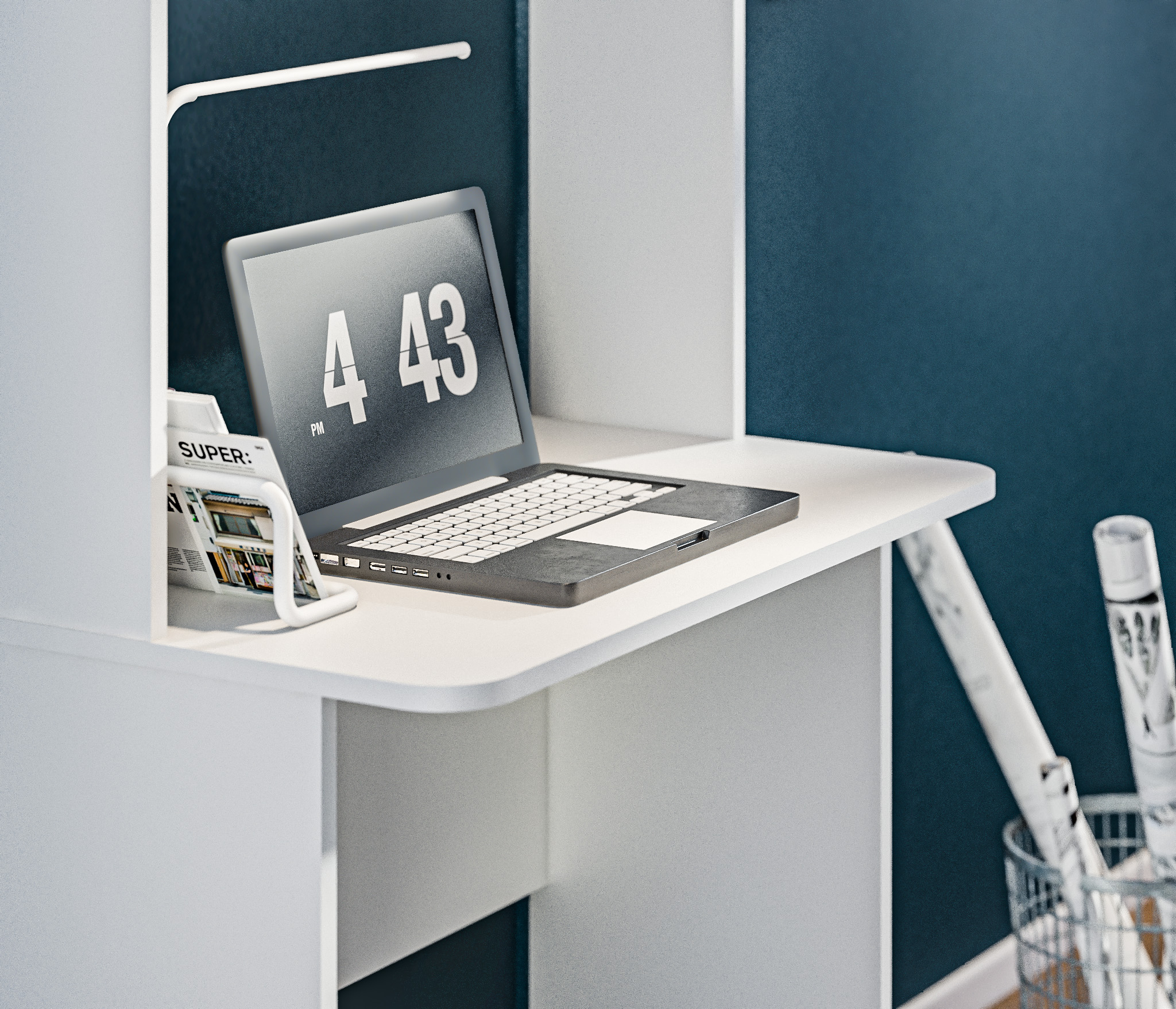 Этот стеллаж со столом обеспечивает удобное рабочее место с дополнительными полками для хранения книг и других предметов.