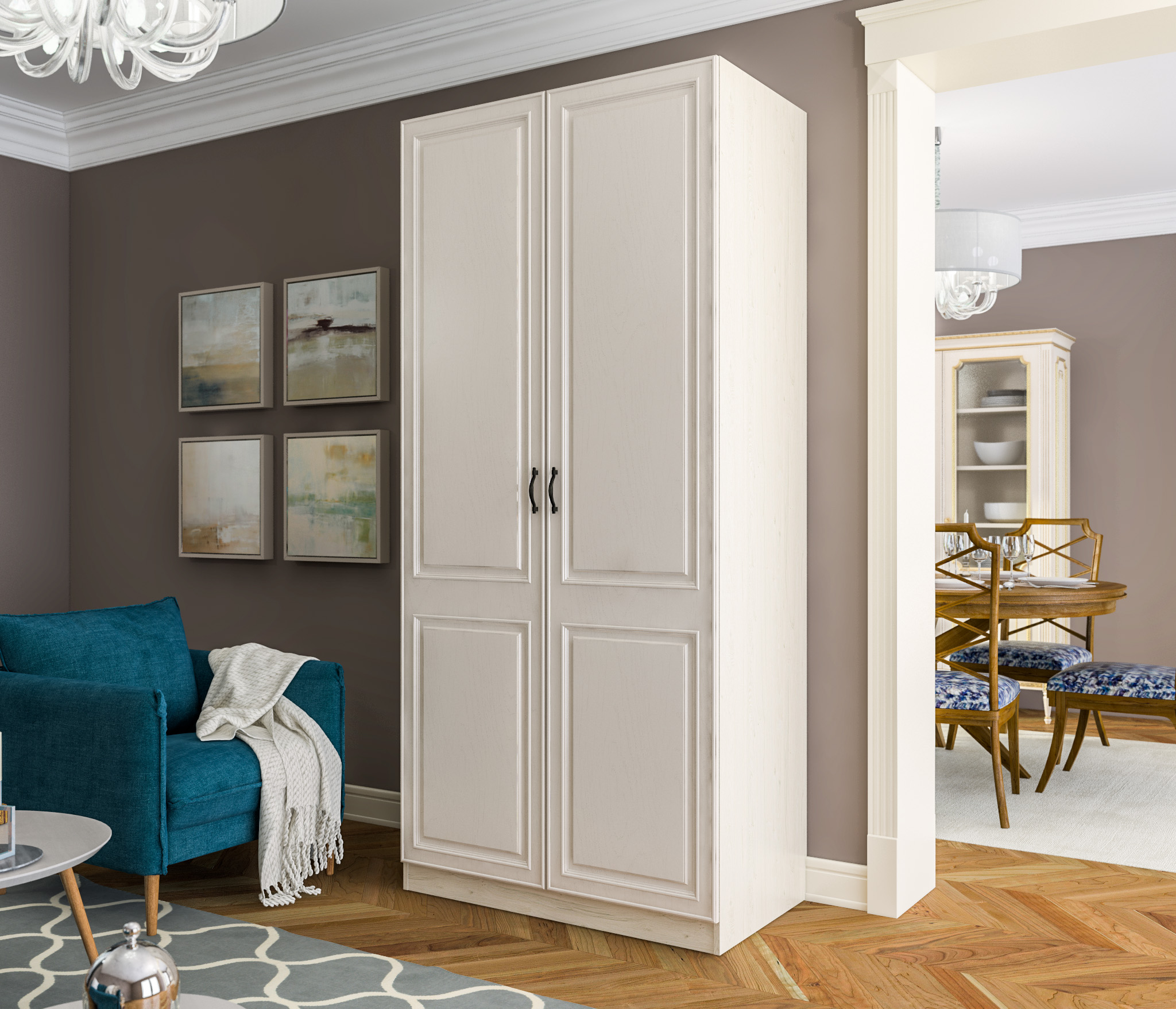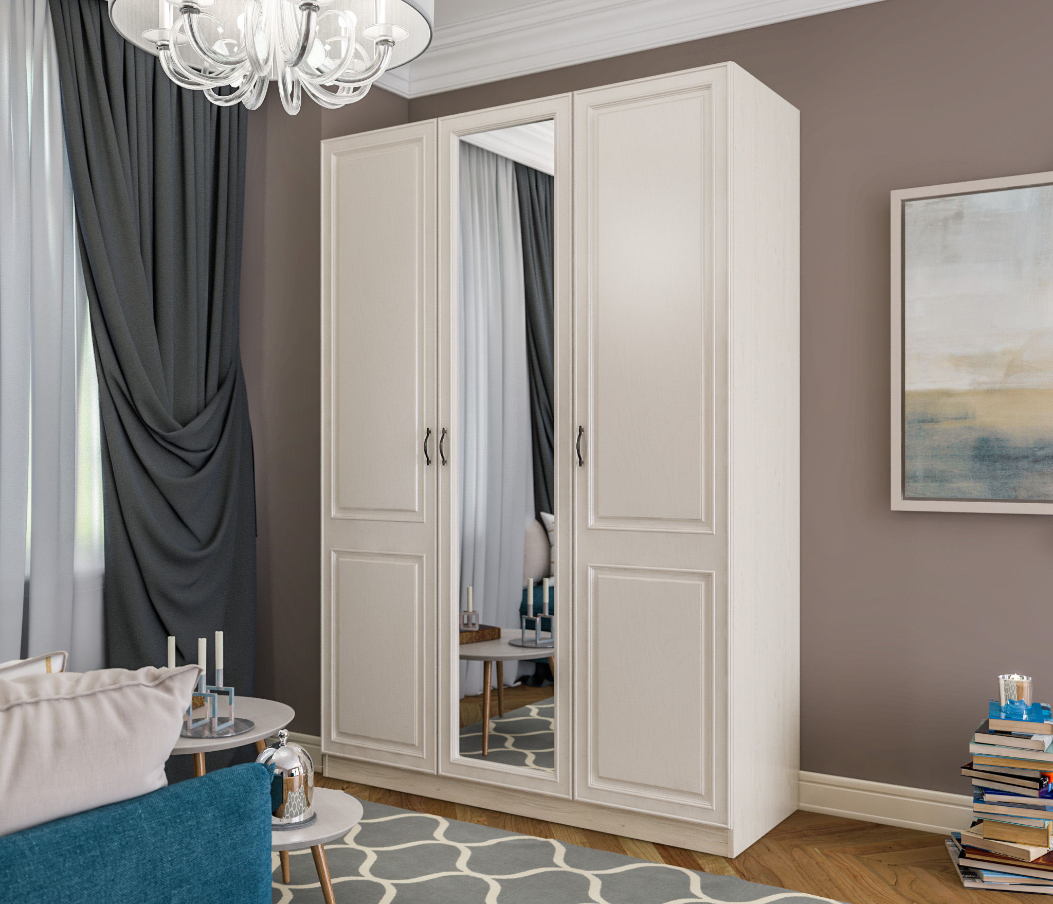 Наполнение шкафа: Полки и штанга для одежды обеспечивают удобное хранение и организацию вещей.