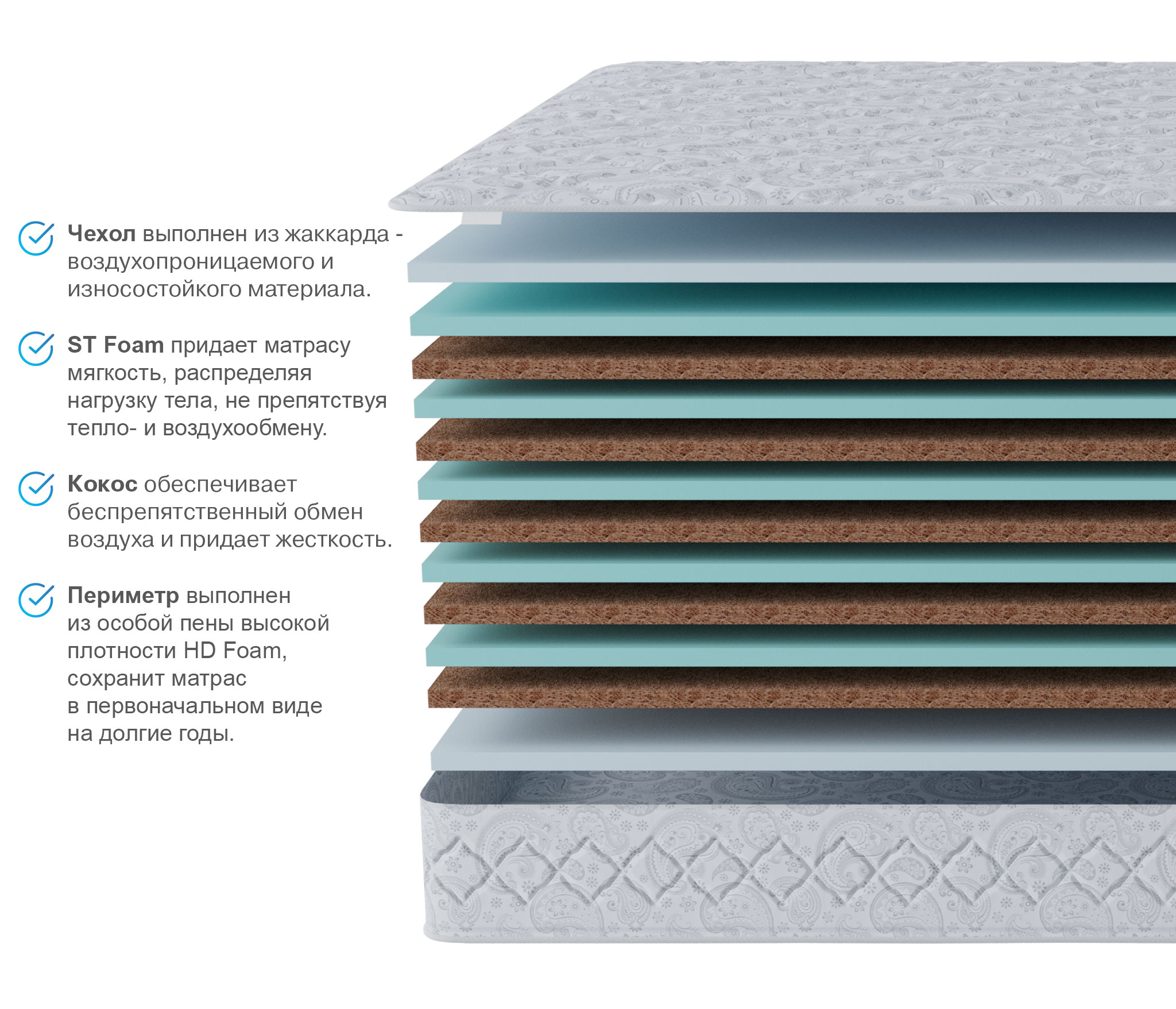 Наполнитель: 5 листов латексированной кокосовой койры и 5 листов ППУ