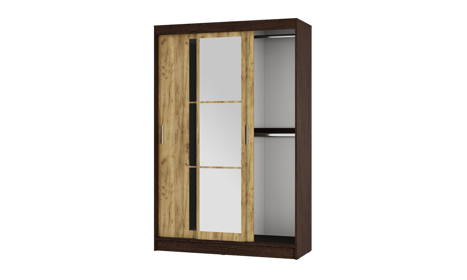 Зеркальные фасады визуально увеличивают пространство комнаты, делая её более светлой и просторной, что особенно важно для небольших помещений. Максимальная нагрузка до 10 кг на полку и штангу обеспечивает надёжное хранение ваших вещей, не опасаясь перегрузки.