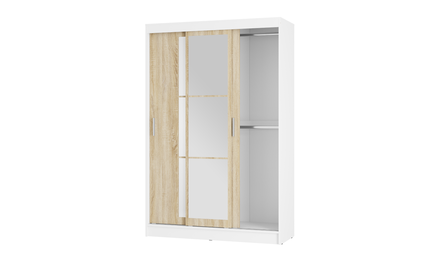 Зеркальные фасады визуально увеличивают пространство комнаты, делая её более светлой и просторной, что особенно важно для небольших помещений. Максимальная нагрузка до 10 кг на полку и штангу обеспечивает надёжное хранение ваших вещей, не опасаясь перегрузки.