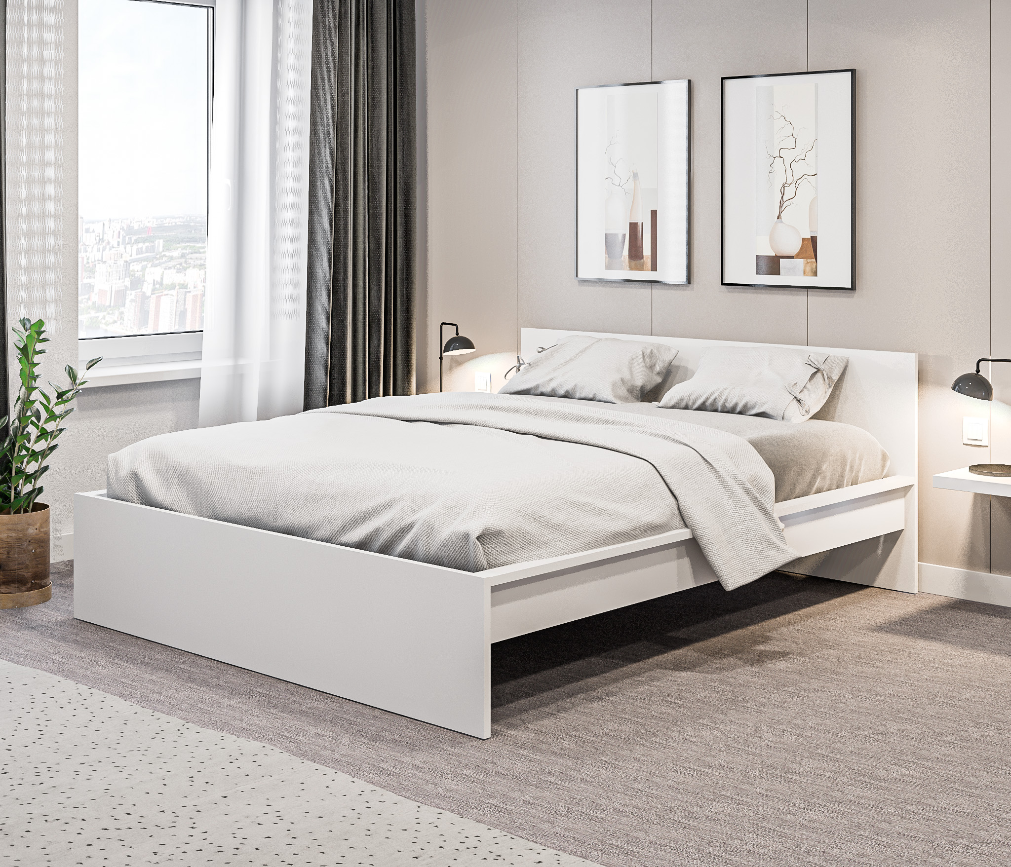 Монтана СБ-3550 Кровать Белый Альпийский,Дуб Гамильтон,МДФ Дуб Белый