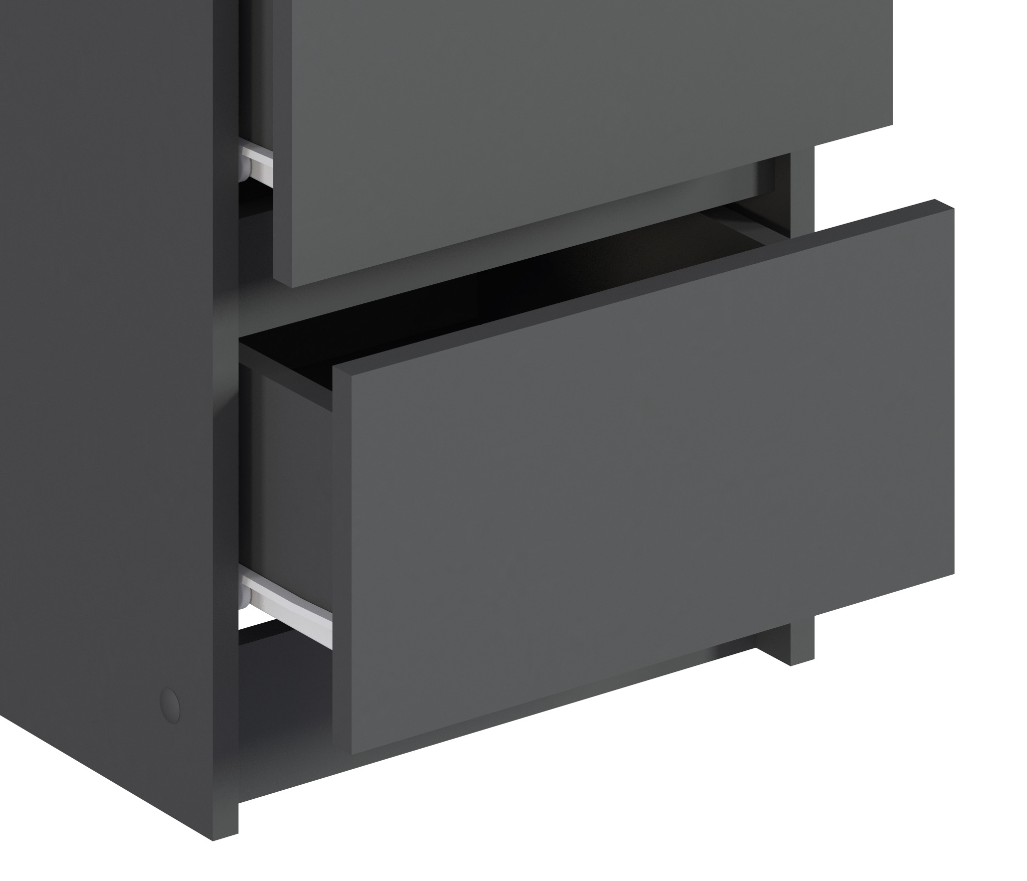 Габаритные размеры тумбы довольно компактны - ширина 39 см, высота 53 см, глубина 39 см. Под столешницей расположены два ящика, оснащенных прочными выдвижными механизмами. Тумба идеально подойдет для оформления вашей спальни или детской в современном стиле. Тумба выполнена из прочного современного КДСП.