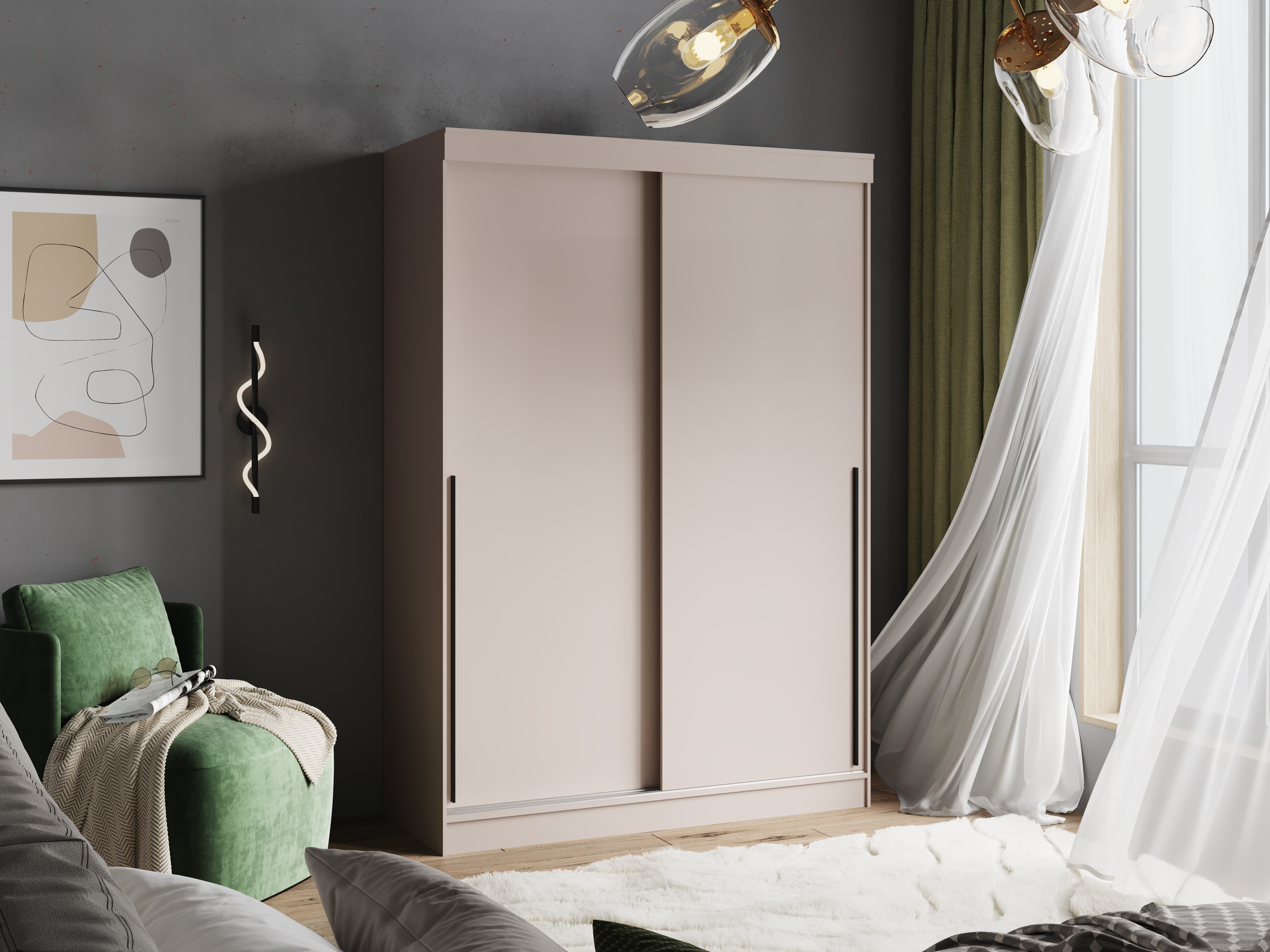 Удобная система дверей-купе экономит пространство и обеспечивает легкий доступ ко всему содержимому.