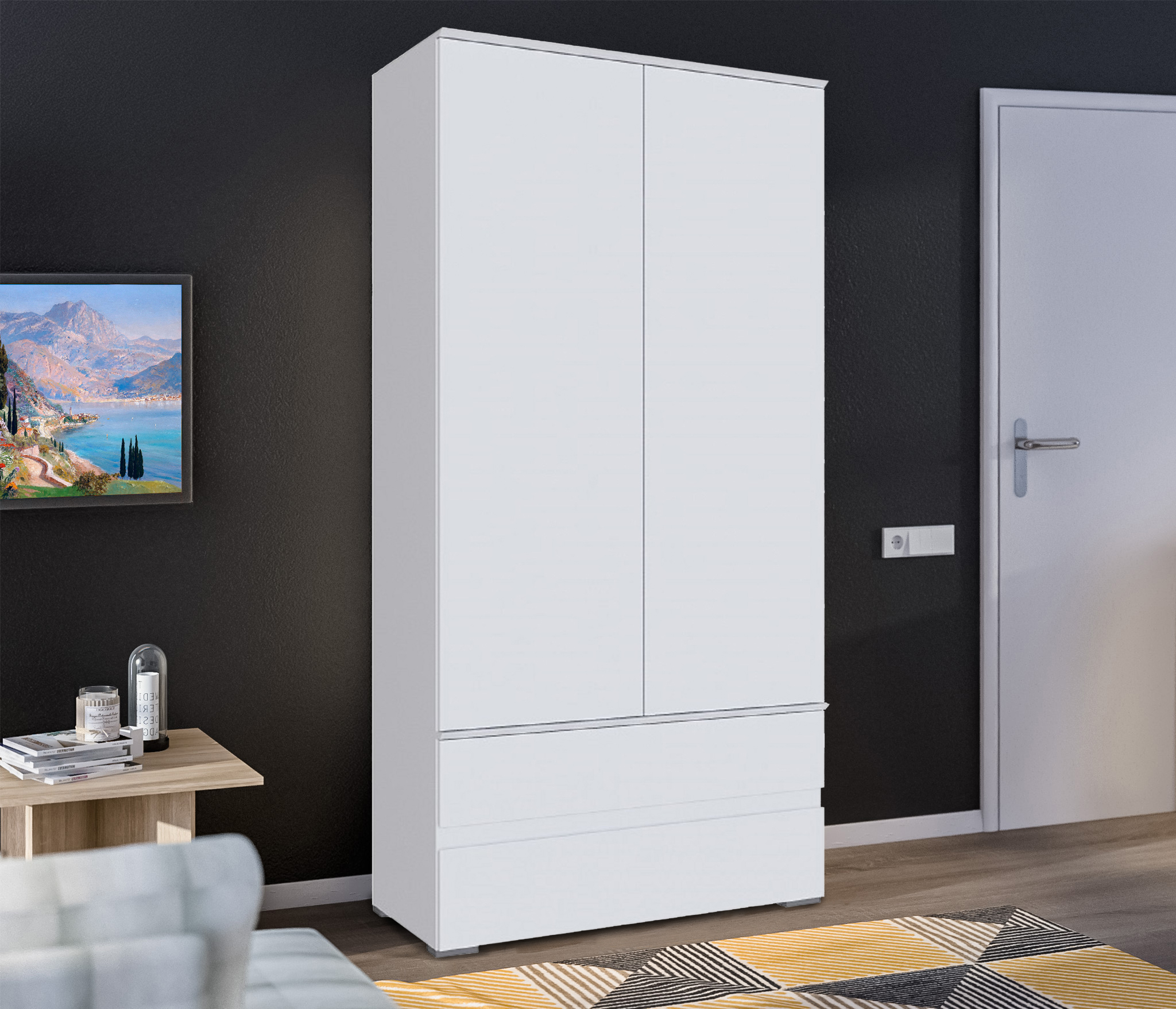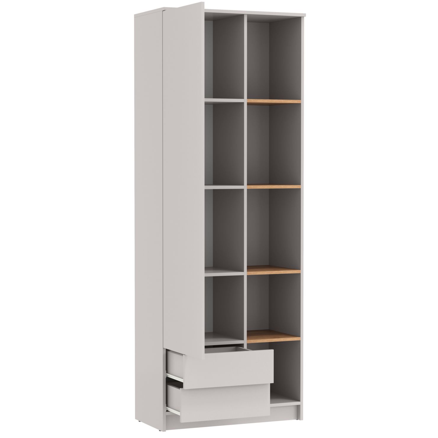 Два выдвижных ящика, полки за распашной дверкой и