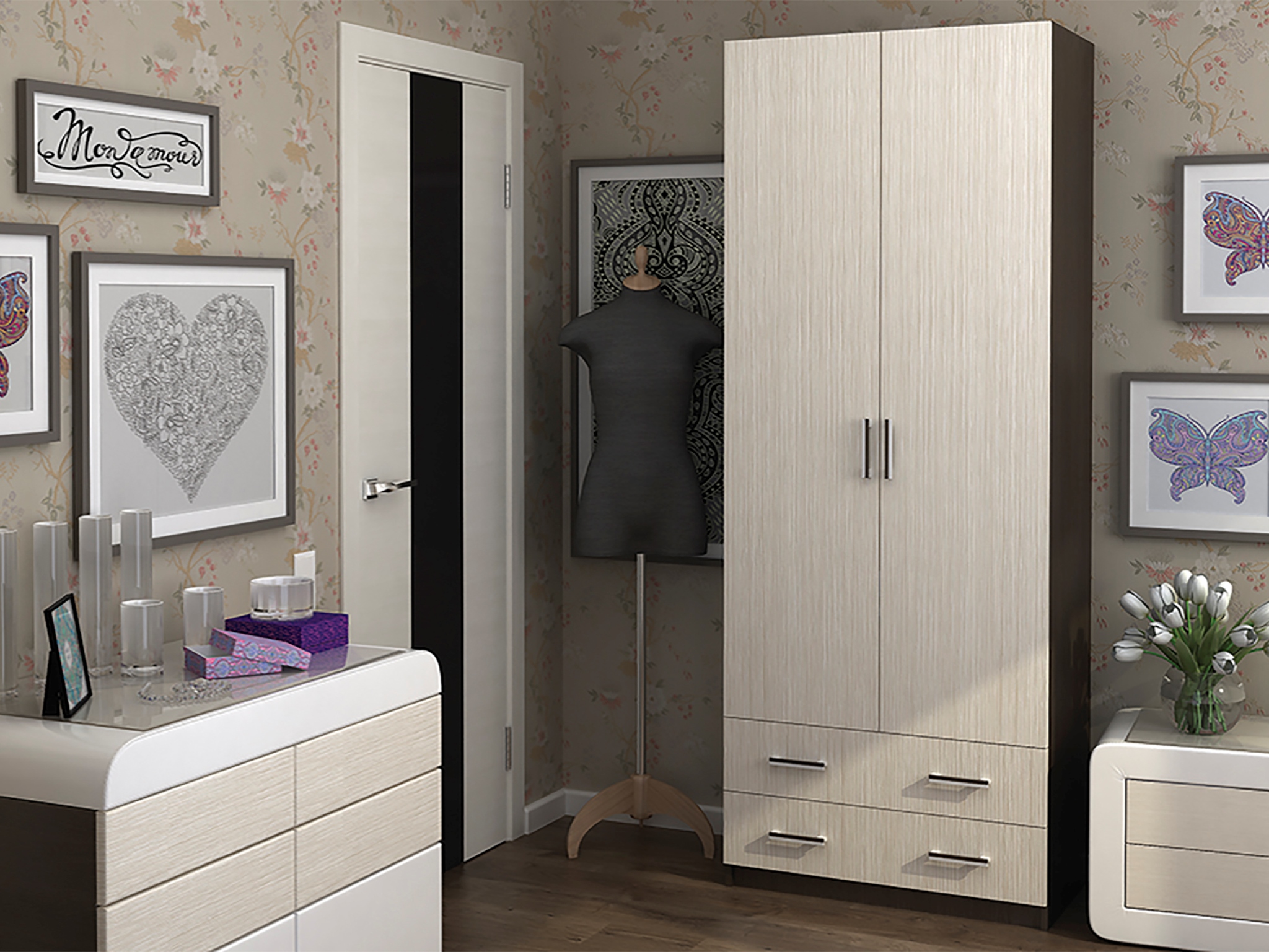 Шкаф Прайм 89.03 разместит белье и одежду.