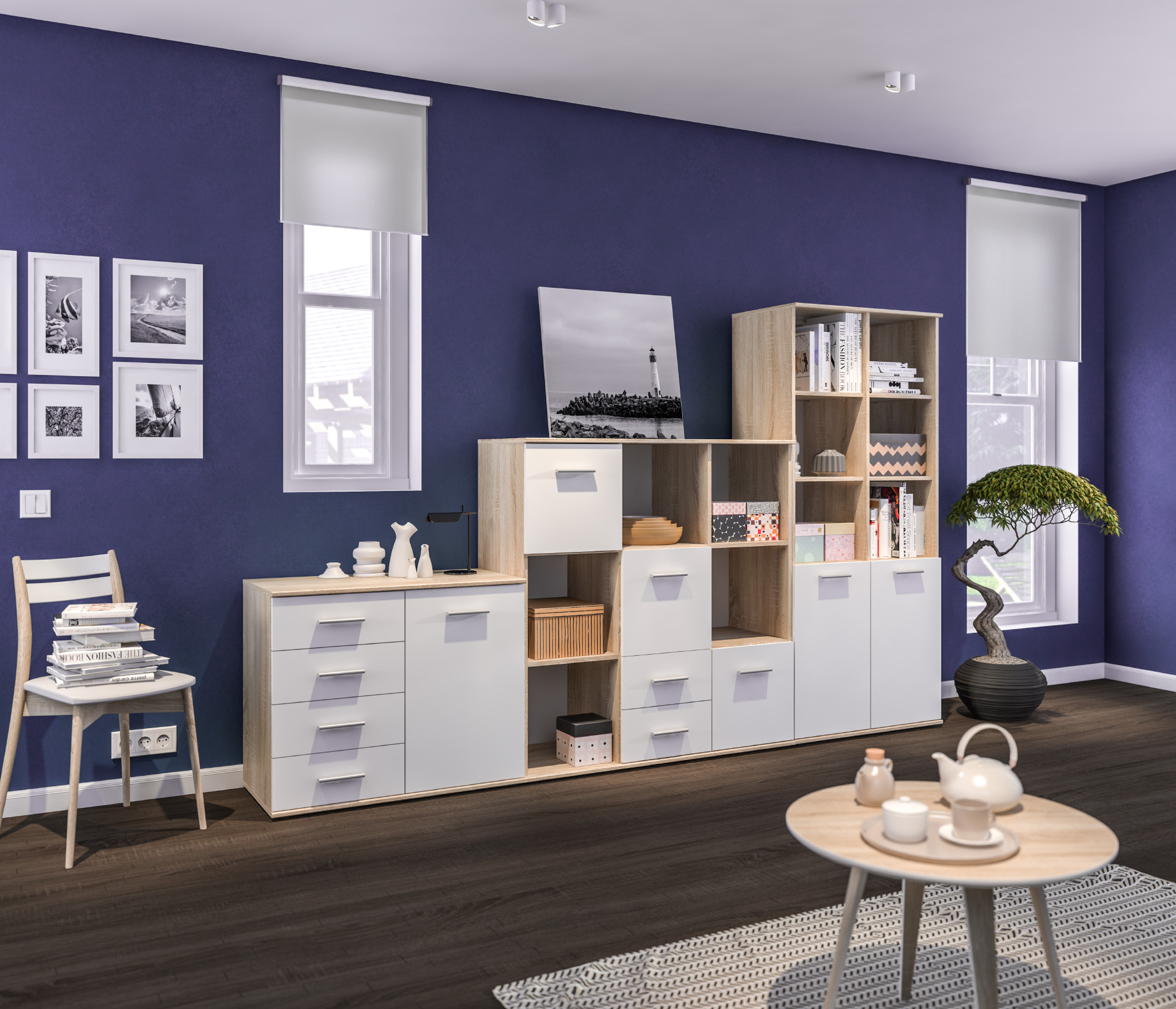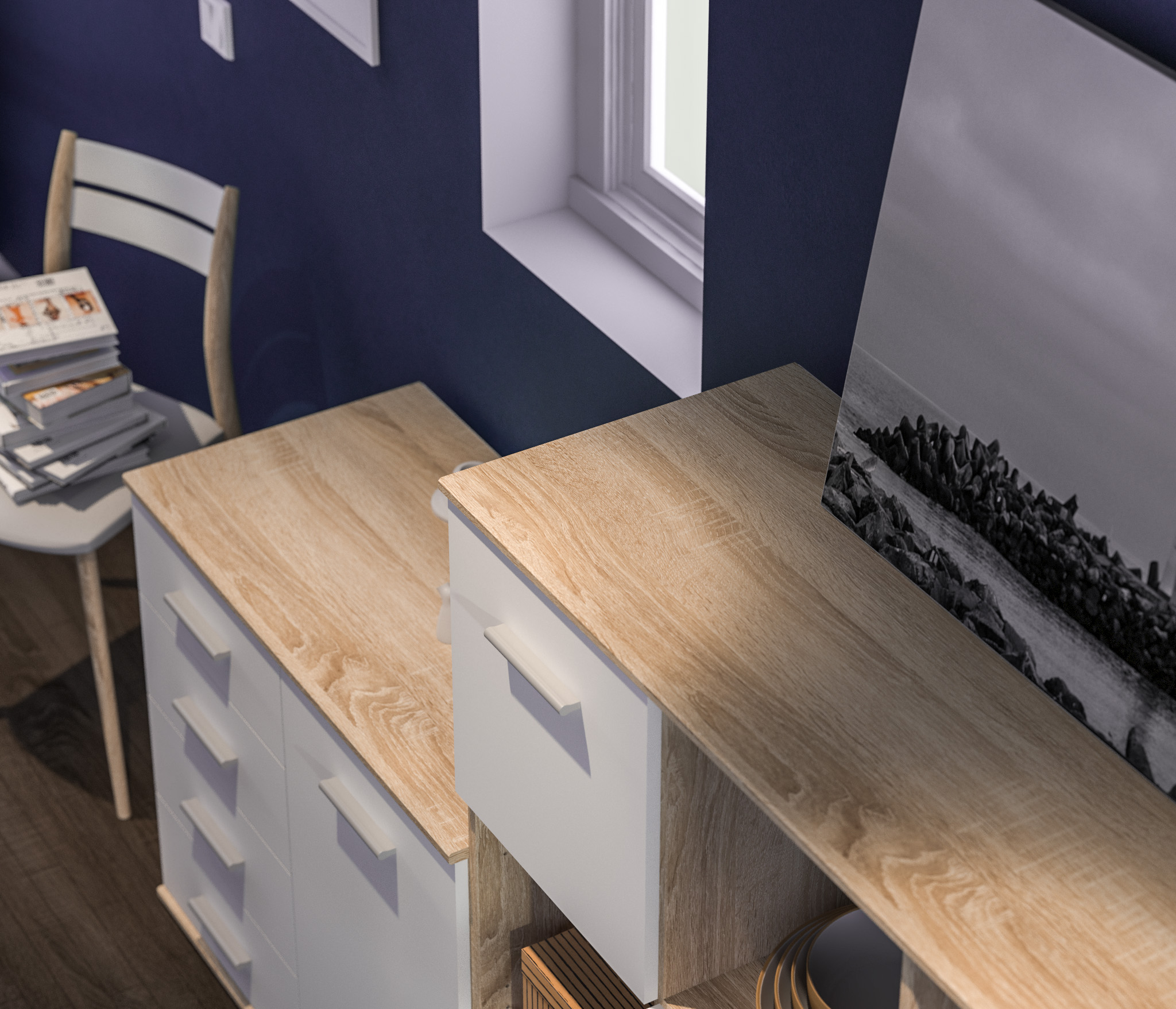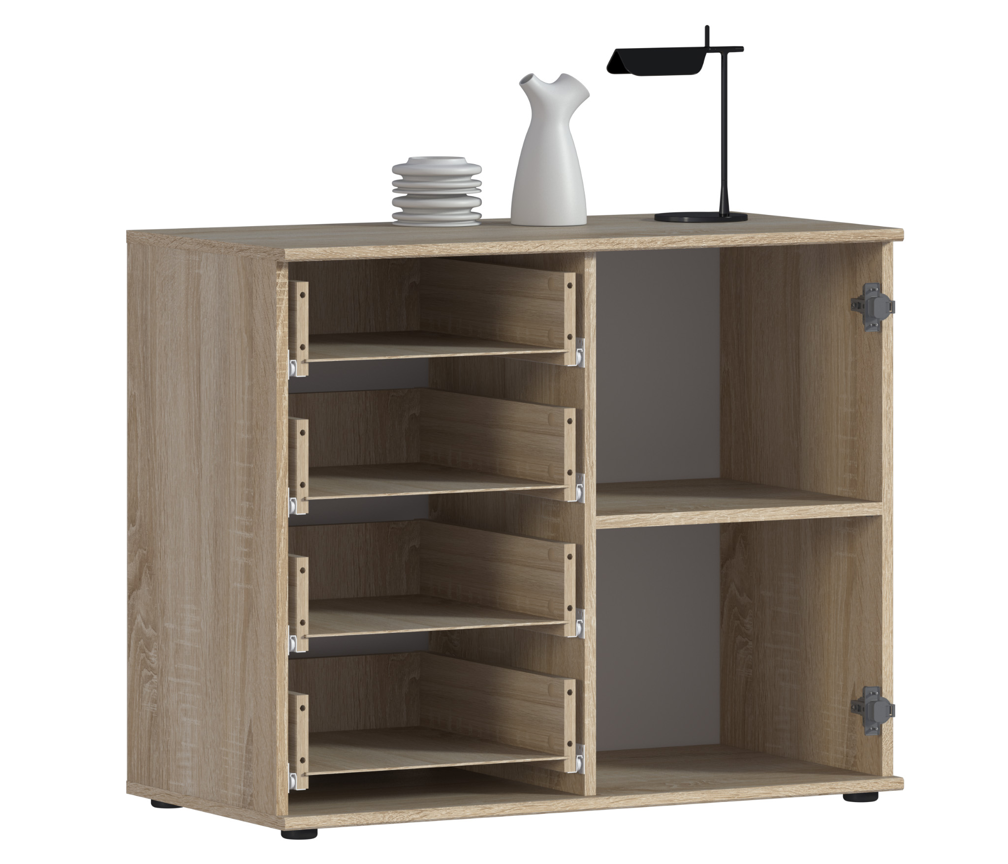 Комод Мамбо выполнен из прочного и влагоустойчивого материала. Все выдвижные механизмы прочные и имеют солидный ресурс.