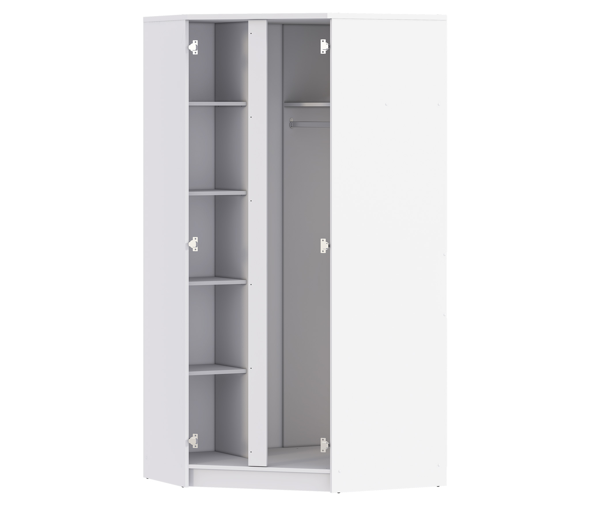 отделений: одно с полками для белья, другое- со штангой для одежды и верхней полкой