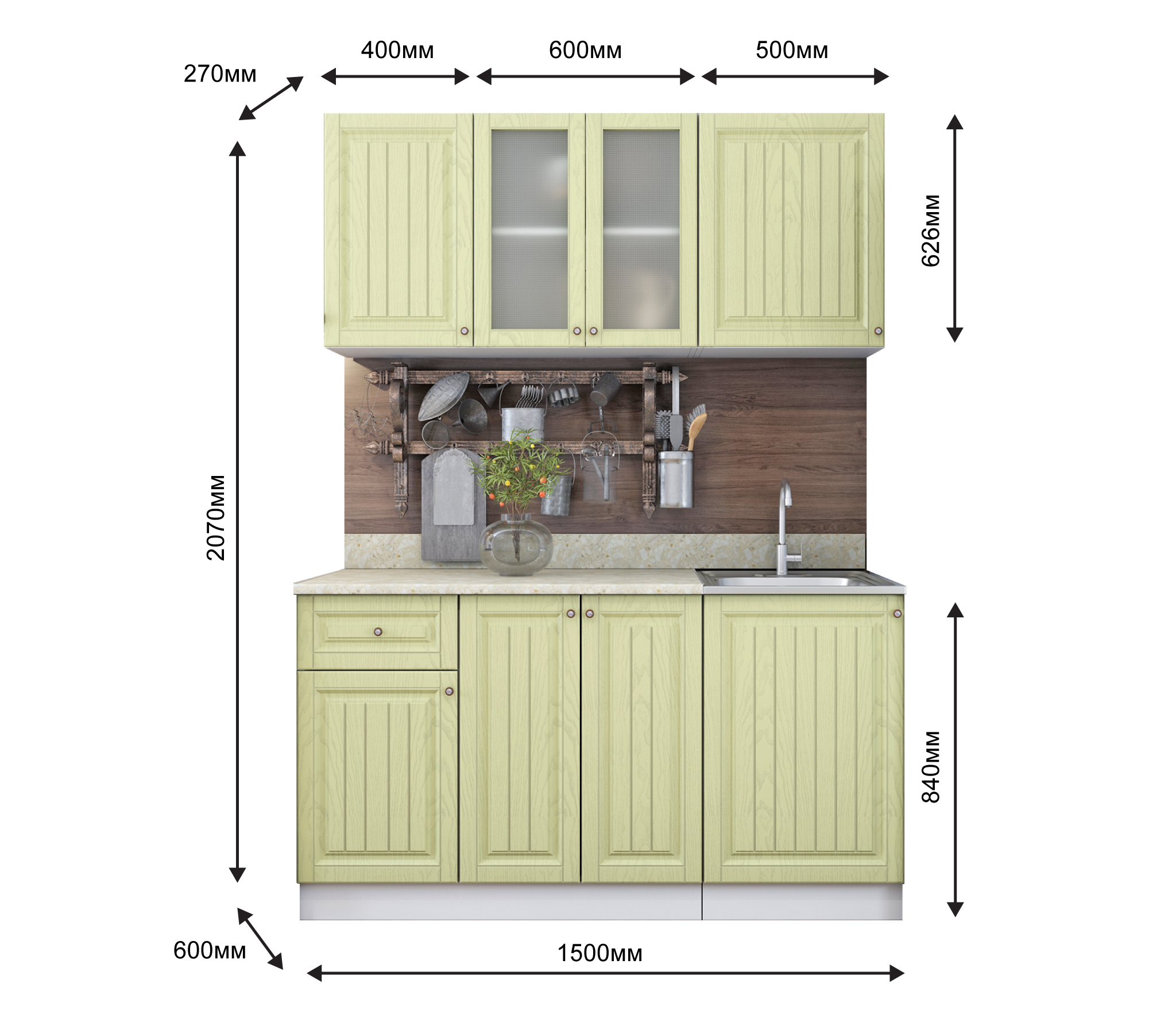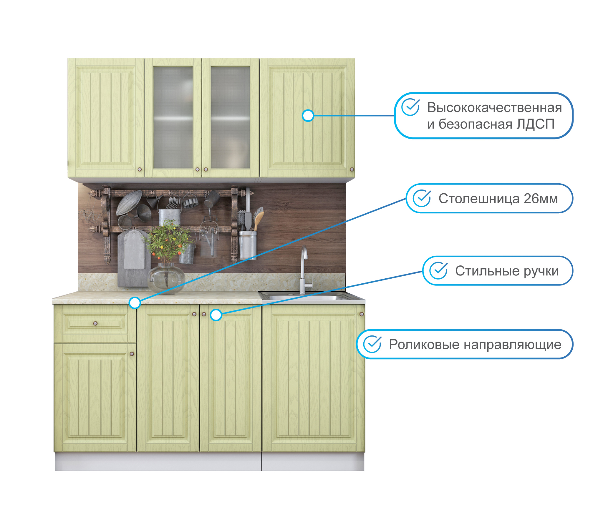 Кухня Хозяюшка 1,5 м Фисташка МДФ                                        Код R0000244914