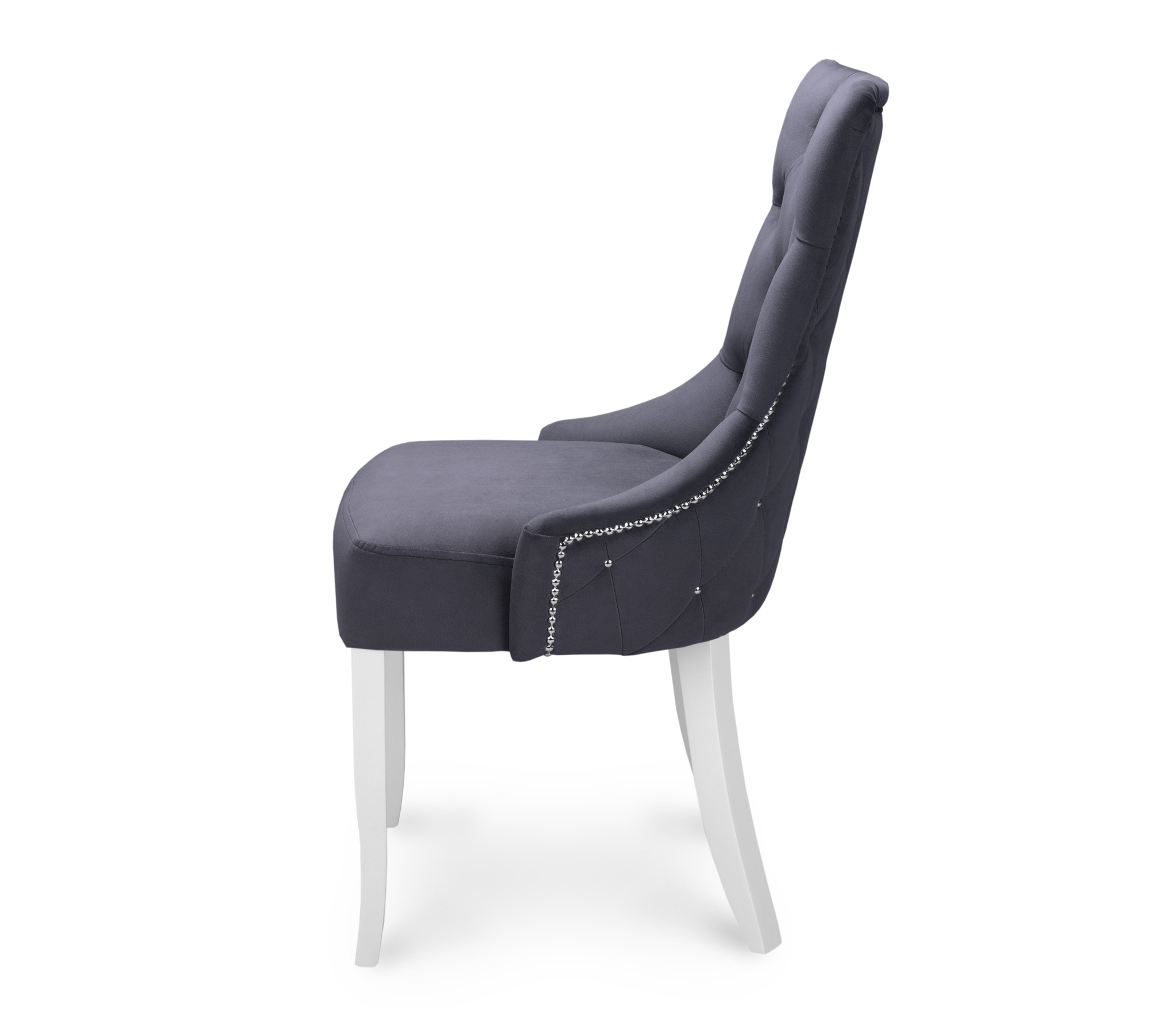 Декоративный, металлический молдинг украшает спинку стула.