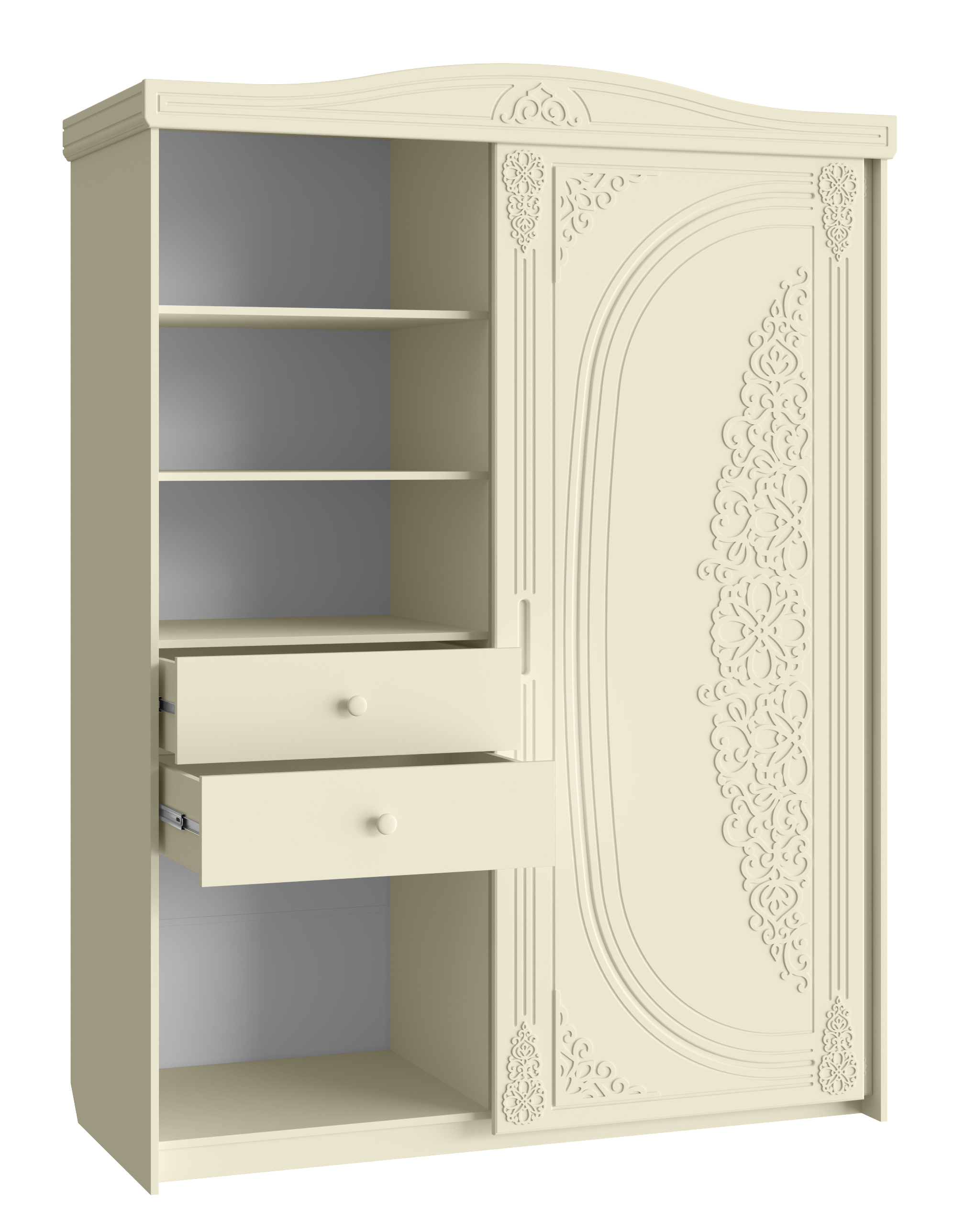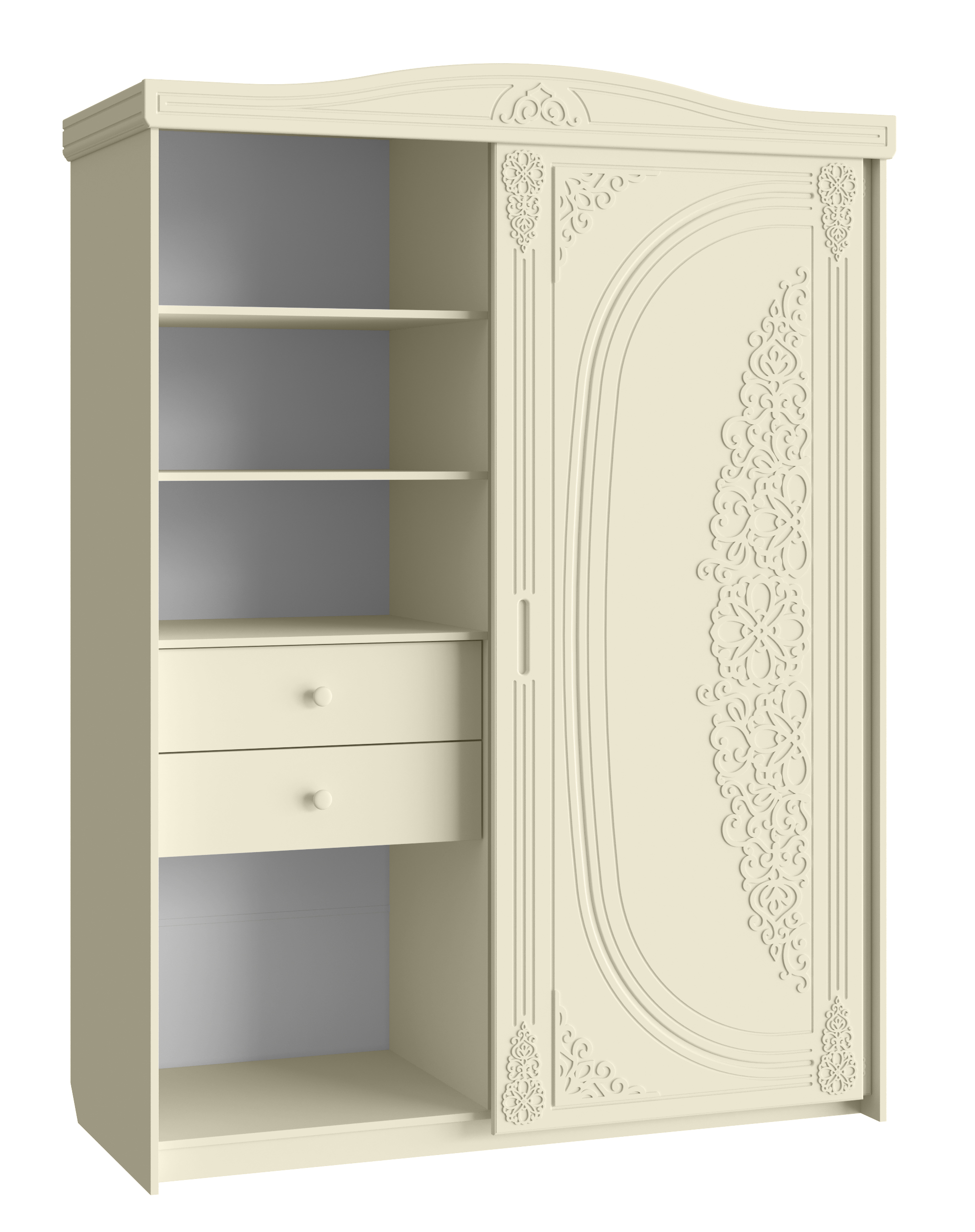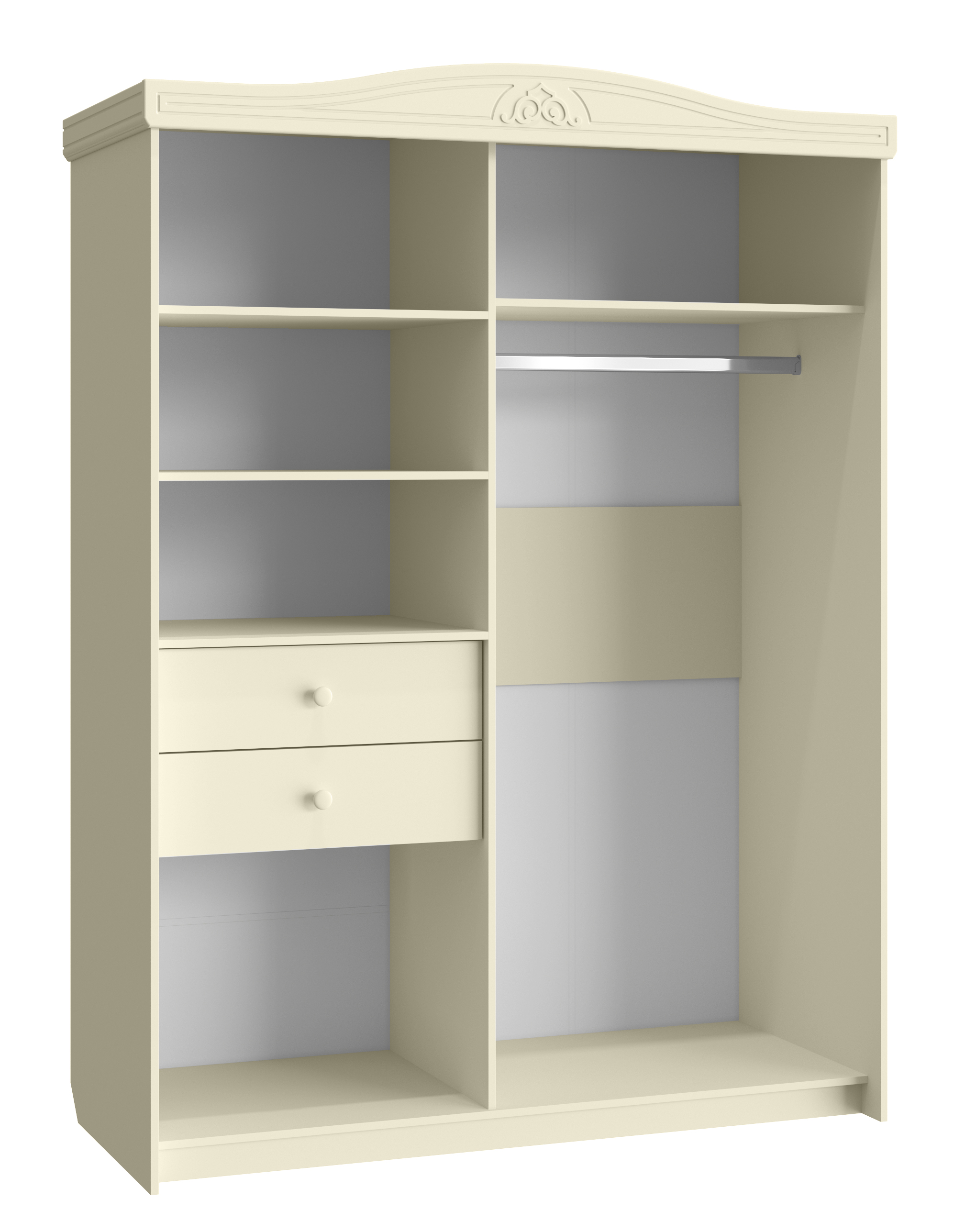 «Ассоль» - мягкий мерцающий глянец и эксклюзивный узор, повторяющийся на фасадах всех модулей идеален для создания нежного уютного интерьера спальни, гостиной, детской, прихожей.
