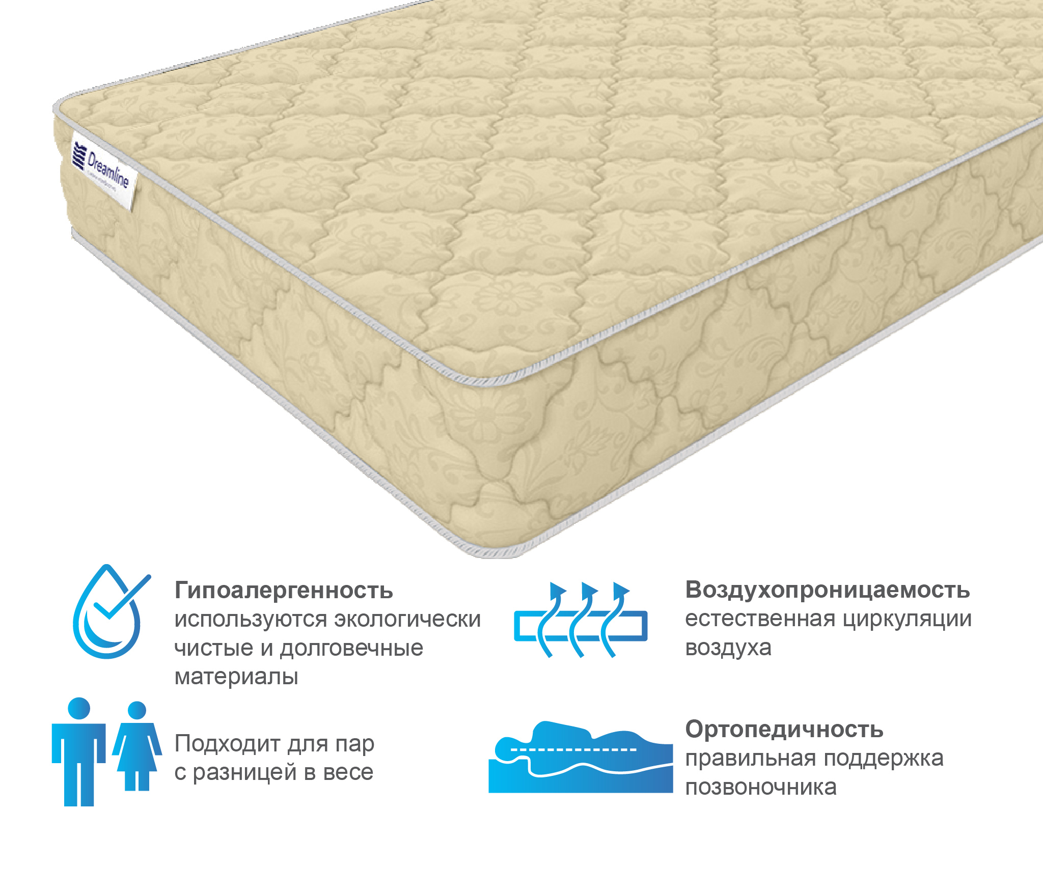Матрасы серии Селена от фабрики матрасов Dreamline представляют собой идеальное сочетание цены и качества, а также могут выступать в роли, как временного варианта спального места для дачи, гостиницы или дома отдыха, так и на постоянной основе в домашних условиях.