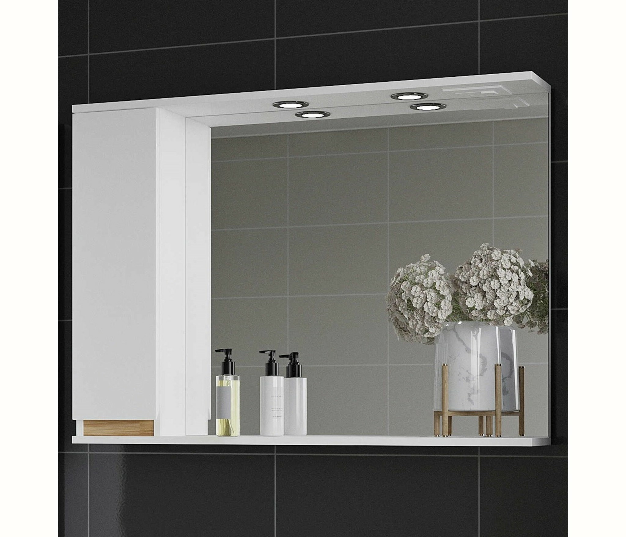 Смотрится отлично! Купили в ванную комнату, нас предупреждали, что материал не для размещения около мокрой зоны( висит очень близко к ванной) места мало даже для зеркала в 60 см шириной, но нам так подошло по дизайну, что решили однозначно берем! Не пожалели еще не разу- служит, убираю обычными средствами, шкаф удобный, и подсветка для лучшей видимости.