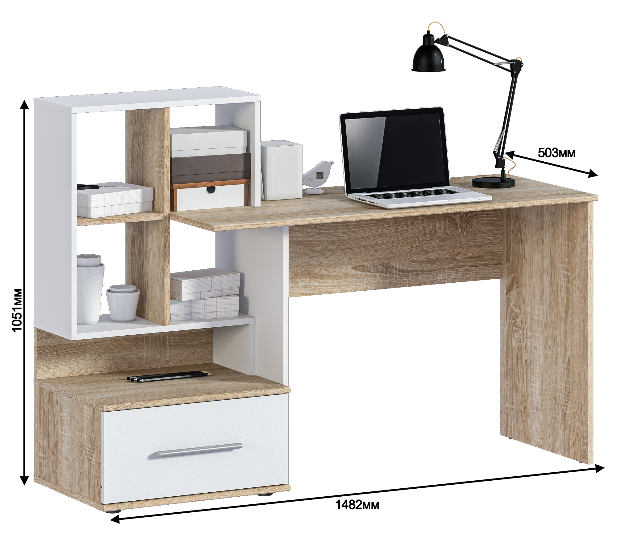 Стол универсальный, можно собрать правый и левый вариант.