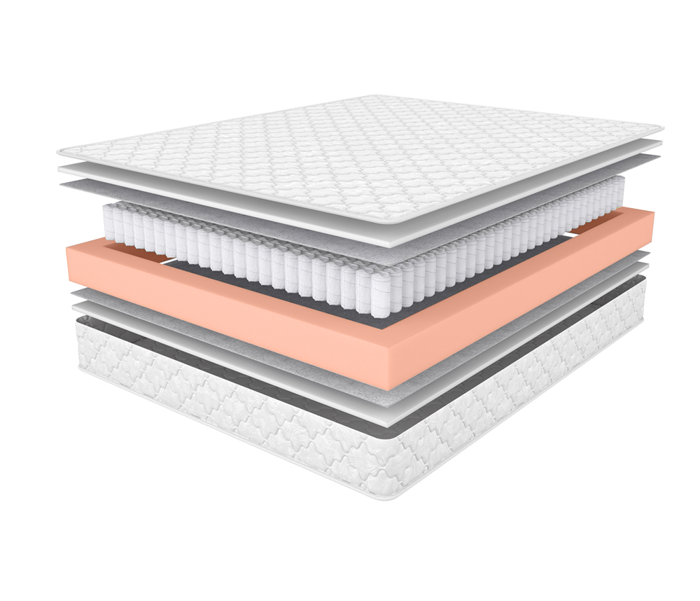 Двусторонний матрас умеренной жесткости на основе блока зависимых пружин.