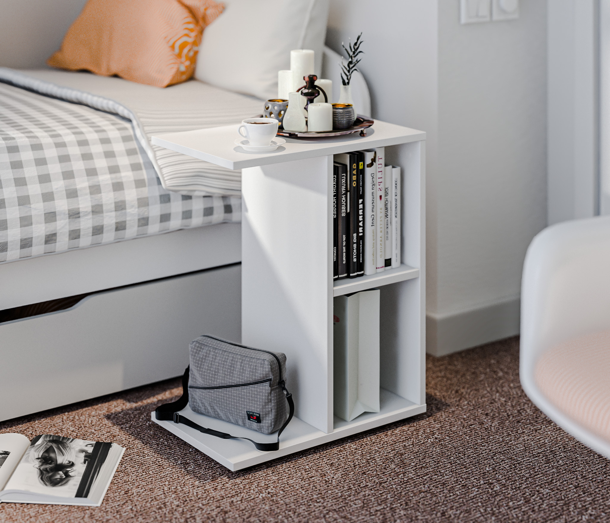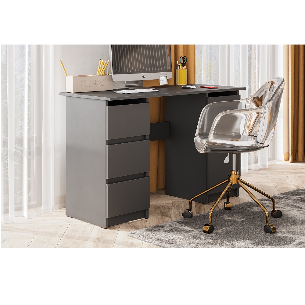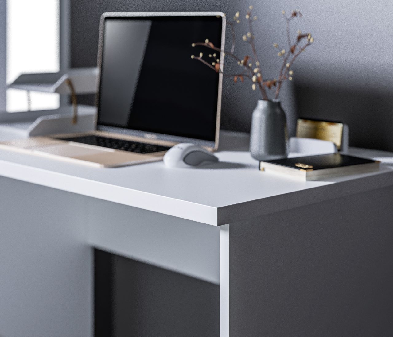 Габаритные размеры – ширина 90 см, высота 75 и глубина 50 см. Стол произведен из современного и экологичного материала ЛДСП. Минималистичный дизайн и цвет стола не создают ощущение громоздкости. Материал отделки легок в уходе.