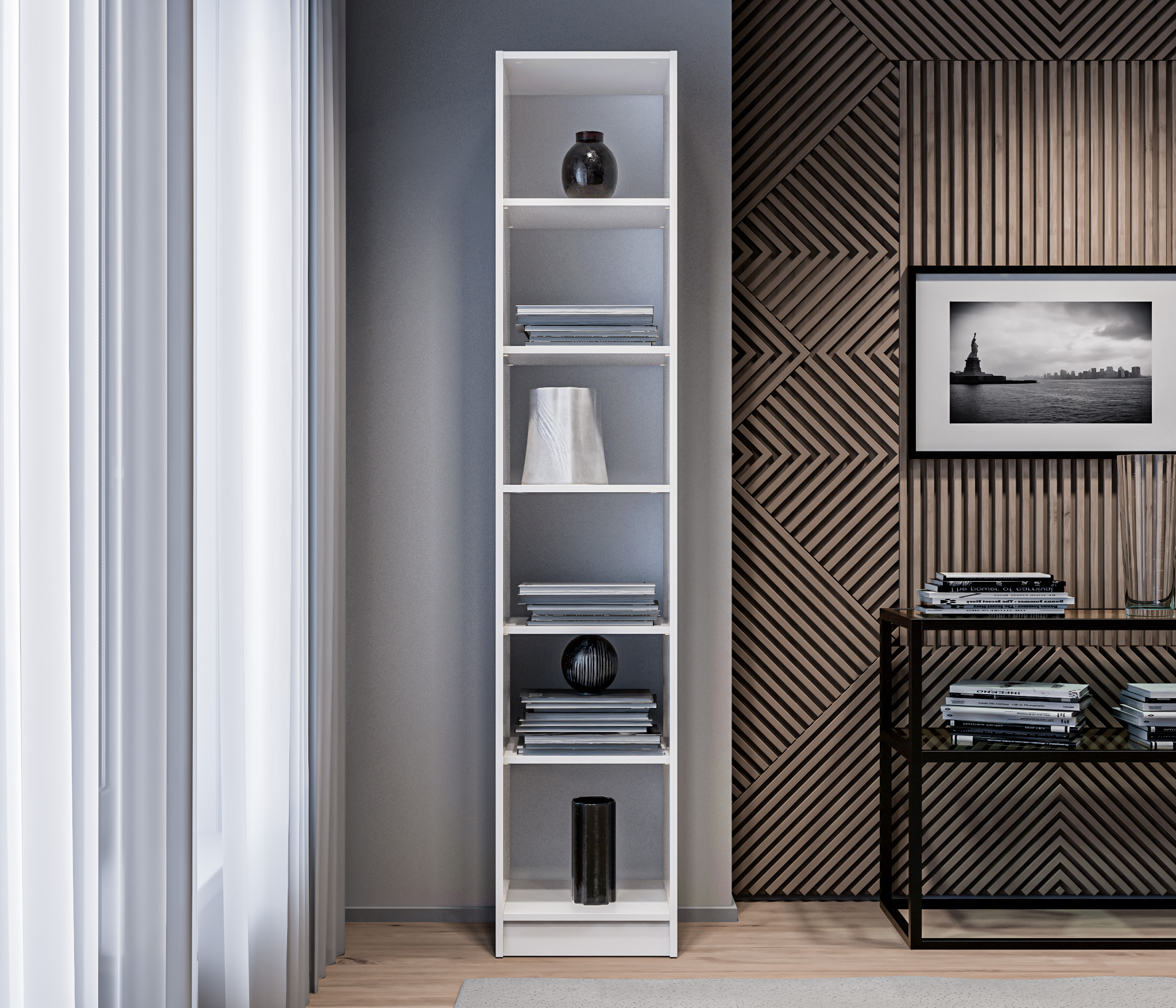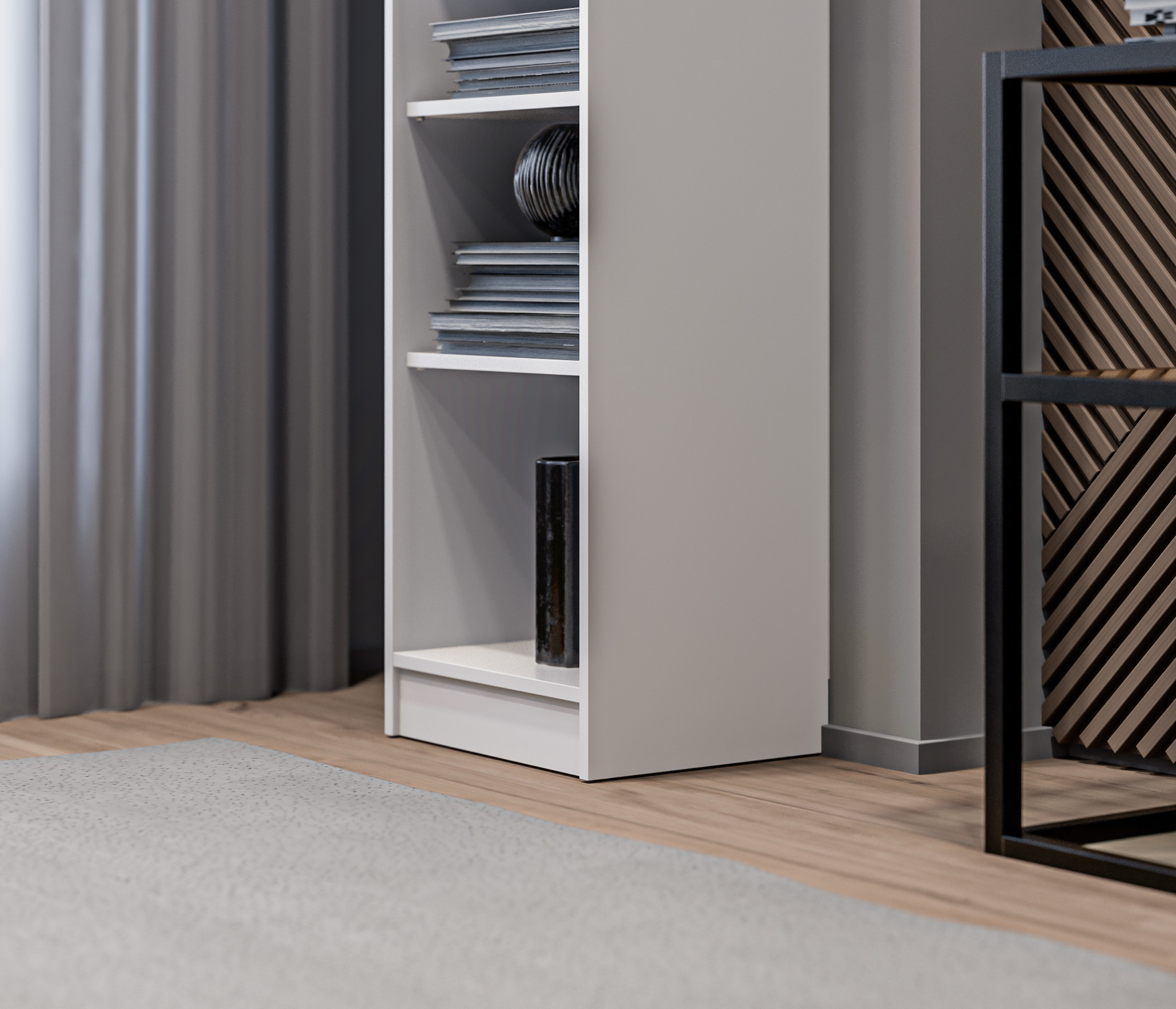МС Твин предоставляет возможность собрать шкаф или стеллаж по своему вкусу. Вы сами выбираете размеры, цвет ручек: белый или черный, наполнение: ящик или полки. Помимо этого, вы можете решить, оставить фасады глухими или выбрать стеклянные, чтобы добавить прозрачности и легкости в ваш интерьер. Создайте шкаф-стеллаж, который идеально подходит для ваших потребностей и вписывается в ваш стиль.