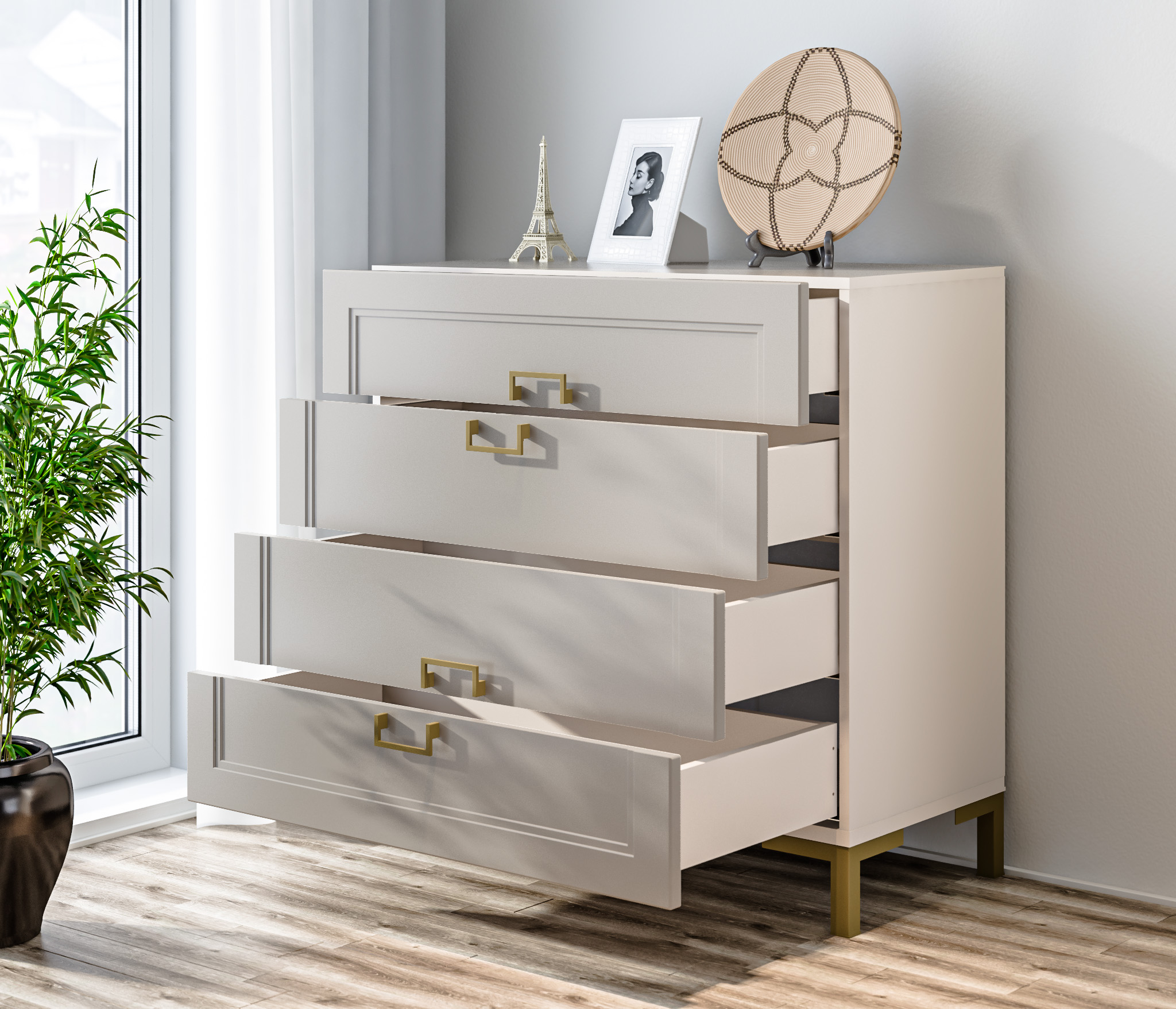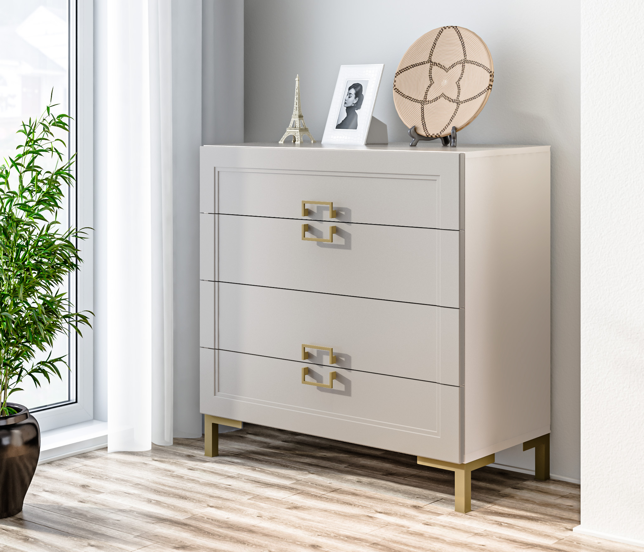 Золотистые ручки и ножки коллекции "Ассоль" добавляют неповторимый шик и изысканность, завершая образ тонким и стильным блеском. Эти акценты создают атмосферу роскоши и утонченности. Они играют роль визуального украшения, дополняя общий вид мебели и придавая ей особый шарм и элегантность.
