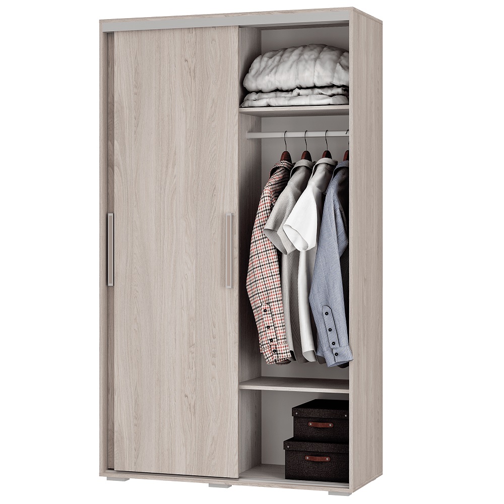 Вместительный шкаф-купе ШКК-11 сочетает в себе практичный дизайн и удобное наполнение. Внутри - комплект просторных полок для одежды в сложенном виде и вещей в коробках, нижняя полка для хранения сезонной обуви и хромированная стационарная штанга. Модель обеспечит продуманное хранение в прихожей или спальне.